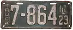 1923 | White on green with border line; "ILL 23" at right | none | 123-456 | 1 to approximately 841-000 | |