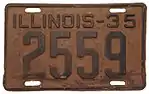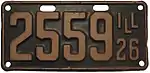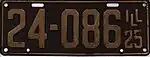 1925 | White on brown with border line; "ILL 25" at right | none | 1-234-567 | 1 to approximately 1-102-000 | |