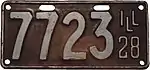 1928 | White on maroon with border line; "ILL 28" at right | none | 1-234-567 | 1 to approximately 1-313-000 | |