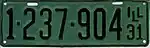 | 1931 | Black on light green with border line; "ILL 31" at right | none | 1-234-567 | 1 to approximately 1-411-000 | ||