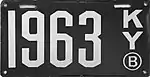 1910–11 White serial on black porcelain plate; vertical "KY" at right, above circle containing 'B' none 1234 1 to approximately 3200 Front and rear plates issued; this practice continued through 1943.