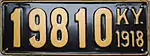 1918 Embossed yellow serial on black plate with border line; "KY. 1918" at right none 12345 1 to approximately 64000