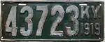 1919 Embossed white serial on green plate with border line; "KY. 1919" at right none 12345 1 to approximately 81000