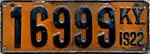 1922 Embossed black serial on orange plate with border line; "KY. 1922" at right none 123456 1 to approximately 167000