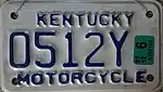 Motorcycle 2003–09 Embossed dark blue serial on white plate; "KENTUCKY" and "MOTORCYCLE" centered at top and bottom respectively 1234A 0000A to 9999Z