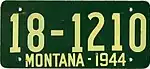 1944 | White serial on green fiberboard plate; "MONTANA-1944" centered at bottom | none | 1-12345 10-1234 |