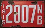 1915 | White serial on red porcelain plate; vertical "1915" and "NB" at left and right respectively | none | 1234 | 701 to approximately 2600 | |