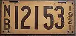 1920 | Yellow serial on black flat metal plate; vertical "NB" and "1920" at left and right respectively | none | 12345 | 1000 to approximately 11800 | |