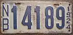 1923 | Embossed white serial on dark blue plate with border line; vertical "NB" and "1923" at left and right respectively | none | 12345 | 1000 to approximately 16700 | |