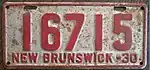 1930 | Embossed maroon serial on silver plate with border line; "NEW BRUNSWICK-30" at bottom | none | 12345 | 5000 to approximately 35000 | |