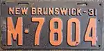 1931 | Embossed orange serial on dark purple plate; "NEW BRUNSWICK-31" at top | none | A-1234 | Probably coded by region | |