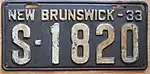 1933 | Embossed white serial on dark blue plate; "NEW BRUNSWICK-33" at top | none | A-1234 | Coded by region (A) | |