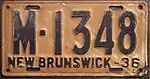 1936 | Embossed black serial on white plate; "NEW BRUNSWICK-36" at bottom | none | A-1234 | Coded by region (A) | |