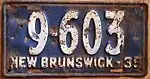 1939 | Embossed white serial on blue plate; "NEW BRUNSWICK - 39" at bottom | none | 12-345 | 1-000 to approximately 34-500 | |
