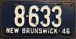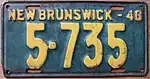 1946 | Embossed white serial on dark blue plate; "NEW BRUNSWICK-46" at bottom | none | 12·345 | 1·000 to approximately 35·500 | |