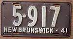 1941 | Embossed beige serial on brown plate; "NEW BRUNSWICK - 41" at bottom | none | 12-345 | 2-000 to approximately 36-500 | |
