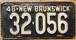 1948 | Embossed white serial on black plate; "48-NEW BRUNSWICK" at top | none | 12·345 | 1000 to approximately 42·500 | |