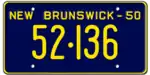 1950 | Embossed white serial on dark blue plate with border line; "NEW BRUNSWICK – 50" at top | none | 12·345 | 1·000 to approximately 53·000 | |