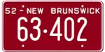 1952 | Embossed white serial on maroon plate with border line; "52 – NEW BRUNSWICK" at top | none | 12·345 | 1·000 to approximately 64·000 | |