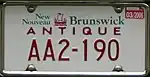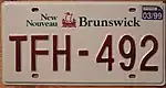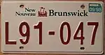 2003–09 | As above, but with revised wordmark ("New" to the left of the galley, "Nouveau" to the right and "Brunswick" and "CANADA" below) | none | AB1 234 | AA1 001 to unknown | |