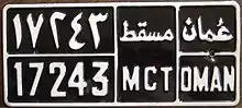 Vehicle registration plates of Oman started in 1970. The current version started in 2001.