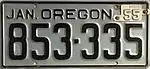 In 1956, the United States, Canada, and Mexico came to an agreement with the American Association of Motor Vehicle Administrators, the Automobile Manufacturers Association and the National Safety Council that standardized the size for license plates for vehicles (except those for motorcycles) at 6 inches (15 cm) in height by 12 inches (30 cm) in width, with standardized mounting holes.[2] The 1955 (dated 1956) issue was the first Oregon license plate that complied with these standards.