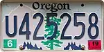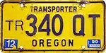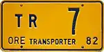 Utility Trailer | c. 1979–83 | Blue on gold; "ORE" and sticker box at top and "TRAILER" at bottom | U123456 | U000001 to approximately U041000 | Issued to trailers having a loaded weight of 8,000 lb or less. |
