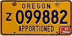 Commercial Truck | 1966–73 | Orange on aluminum | T123456 | T200001 to approx. T346500 | Issued to trucks that only operate within Oregon and have a GVW of 26,000 pounds or less. |