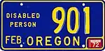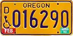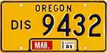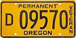 Dealer | 1977-1983 | Blue on gold with "OREGON DEALER" and 2-digit year or valiation sticker at bottom | D/A 1234 A | Issued to dealers with current business license | |