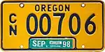 - ↑ "Old Oregon License Plates". LeatherLicensePlates.com. Retrieved August 17, 2017.