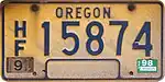 - ↑ Goetze, Janet (October 11, 1989). "Oregon plates are getting brighter: '89 Legislature agreed to alter color scheme". The Oregonian, p. B6.