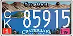 Crater Lake | 2022–present | White on multicolored background. Surface-printed serials. Redesigned in 2022, released September 9, 2022. | C/B 12345 | C/B 44001 to present | Surcharge supports Crater Lake National Park. |