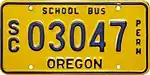 Blue on gold, "OREGON" at top, "SCHOOL BUS" at bottom and "PERM" at right | |||||