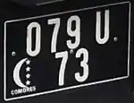 The Comoros requires its residents to register their motor vehicles and display vehicle registration plates.[1] The current plates are European standard 520 mm × 110 mm, and use French stamping dies.[2][3]