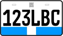• 5 digit diplomatic license plates with black numbers on a blue background are in diplomat use.