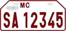 • TC (used for motorcycles and tricycles in public use or for-hire, placed in top left)