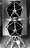 The scintillation X-ray detector (XC) aboard Vela 5A and its twin Vela 5B consisted of two 1 mm thick NaI(Tl) crystals mounted on photomultiplier tubes and covered by a 0.13 mm thick beryllium window. Electronic thresholds provided two energy channels, 3–12 keV and 6–12 keV.[10] In addition to the x-ray Nova announcement indicated above the XC Detector aboard Vela 5A and 5B also discovered and announced the first X-Ray Burst ever reported.[11] The announcement of this discovery predated the initial announcement of the discovery of gamma-ray bursts by 2 years. In front of each crystal was a slat collimator providing a full width at half maximum (FWHM) aperture of ~6.1 × 6.1 degrees. The effective detector area was ~26 cm2. The detectors scanned a great circle every 60 seconds, and covered the whole sky every 56 hours.[12] Sensitivity to celestial sources was severely limited by the high intrinsic detector background, equivalent to about 80% of the signal from the Crab Nebula, one of the brightest sources in the sky at these wavelengths.[12] The Vela 5B satellite X-ray detector remained functional for over ten years.