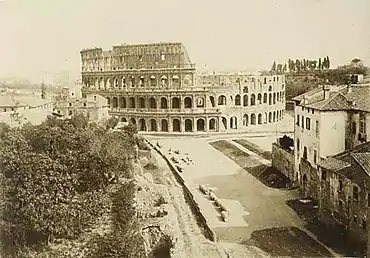 The Colosseum in 1880. On the left, the Velian Hill