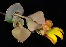 Velleia connata is an erect annual herb in the family Goodeniaceae, and is found in all mainland states and territories of Australia.[4][5] It grows on sandplains and stony hills in Beard's eremaean province.[4] Its flowers are yellow-brown or white-pink and it flowers mainly from February or May to October.[4]