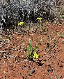 Velleia glabrata (or Pee the bed) is an annual herb in the family Goodeniaceae,[3] which is native to all mainland states and territories of Australia with the exception of Victoria.[4] It grows on sand and clay, flowering from June to October.[3]