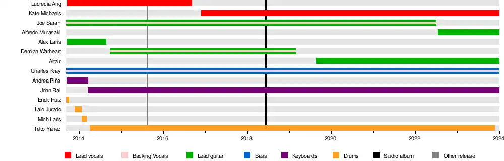 | Past members | Joe SaraF Rob “Teko” Yanez Lucrecia Ang Demian Warheart Alex Laris Andrea Piña Mich Laris Lalo Jurado Erick Ruiz |