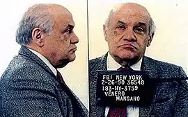 - 1 2 3 4 "Venero (Benny Eggs) Mangano, longtime underboss of Genovese family, dead at 95". nydailynews.com. August 18, 2017.