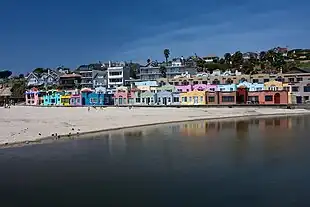 The two rows of colorful units nearest to the beach, as shown in the picture below, are privately owned condos (many of which are available as vacation rentals by owner). The large brown building in the back row (nearest to the street) is now operated as the "Capitola Venetian Hotel".[2]