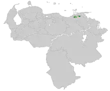 Its natural habitat is subtropical or tropical moist montane forests in the north of Venezuela. It is threatened by habitat loss. Protected areas where it is resident include the Cueva del Guácharo National Park.
