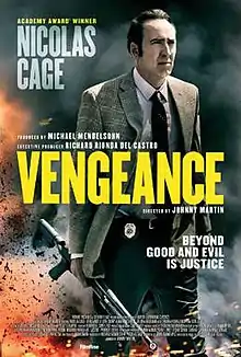 Vengeance: A Love Story is a 2017 American action thriller film[1][2] directed by Johnny Martin, written by John Mankiewicz, and starring Nicolas Cage, Don Johnson, Anna Hutchison, Talitha Bateman and Deborah Kara Unger. It is based on the 2003 novel Rape: A Love Story by Joyce Carol Oates. The film was released on September 15, 2017, by FilmRise.
