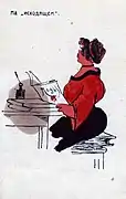 In 1922, the newspaper's employees came up with the idea of creating a satirical magazine Skorpion, which would criticize such phenomena as petty bourgeoisie, philistinism, formalism, and bureaucracy. The artists of Skorpion were A. Ivanov and V. Romov. Romov's cartoons, published in the headings "Nep Grimaces" and "Grimaces of life", reflected the characteristic types of that era: a smug Nepman and combine dealers who used "air" and "smoke" as profit.[1]