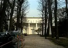 The Giardini is arguably the pre-eminent traditional site of La Biennale Art Exhibitions since the first edition in 1895. It rose to the eastern edge of Venice and was made by Napoleon at the beginning of the 19th century.[1] After it was launched, the success of the first editions which attracted approximately 200,000 visitors in 1895 and about 300,000 in 1899, continued to grow. Starting from the launch in 1907 several foreign pavilions were added to the already built Central Pavilion. The Giardini now hosts 30 pavilions of foreign countries, some of them designed by architects such as Josef Hoffmann's Austria Pavilion, Gerrit Thomas Rietveld's Dutch pavilion or the Finnish pavilion, a pre-fabricated with a trapezoidal plan designed by Alvar Aalto.[2]