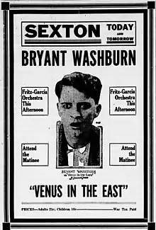 Venus in the East is a 1919 American silent comedy film directed by Donald Crisp, written by Gardner Hunting and Wallace Irwin, and starring Bryant Washburn, Margery Wilson, Anna Q. Nilsson, Guy Oliver, Clarence Burton, and Julia Faye. It was released on January 26, 1919, by Paramount Pictures.[1][2]