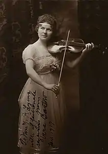Barstow had a busy performing schedule,[4] beginning with appearances in Pittsburgh, Philadelphia, Boston, and New York in 1912–1913 season.[5] In 1916–1917 her tour of Canada was interrupted by an emergency surgery in Toronto.[6][7] Of her 1917 appearance in Texas with Leo Ornstein, a critic reported that "Miss Barstow was delightful in every way and unquestionably one of the greatest women violinists we have heard."[8]