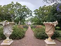 Vergelegen's Cape Dutch house, gardens and winery are open to visitors. Interesting features of any visit include a trip up the mountain to the winery plant, and a walk under the vast Camphor laurels (Cinnamomum camphora) planted by Willem van der Stel in about 1705 which have been declared a protected provincial heritage site.[2] The winery is uniquely shaped in an octagon form that is mirrored on the vineyard's labels.